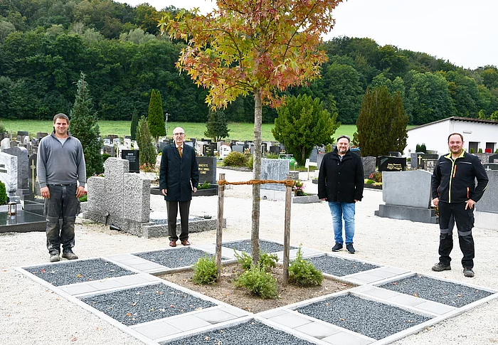 „Der Trend zur Urnenbestattung ist ungebrochen“, sagte Friedrich Gluth, Vorstand des gemeinsamen Kommunalunternehmens (gKU) Kommunale Bestattungen Burglengenfeld – Teublitz, im Gespräch mit Bürgermeister Thomas Beer. Das Unternehmen hat darauf reagiert und auf dem Teublitzer Friedhof ein neues Erdurnengrab angelegt, das Platz für acht Urnen bietet.