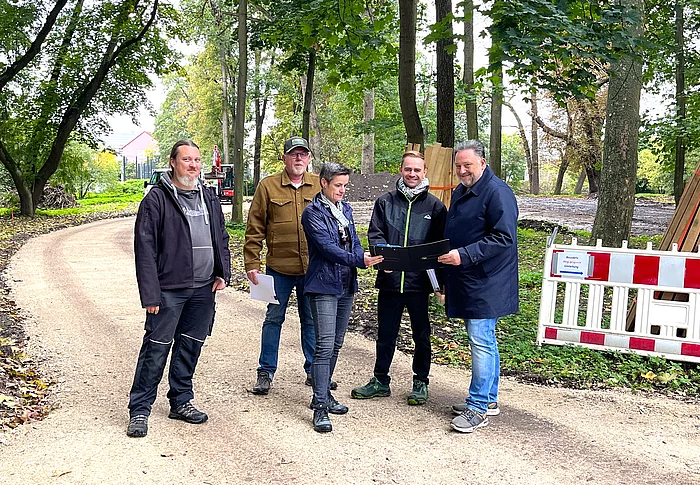 Die Arbeiten im neuen Stadtpark-Areal schreiten planmäßig voran. Anfang Oktober 2025 überzeugte sich auch Bürgermeister Thomas Beer im Rahmen des wöchentlichen Baustellentermins persönlich vom Fortschritt der Maßnahmen.