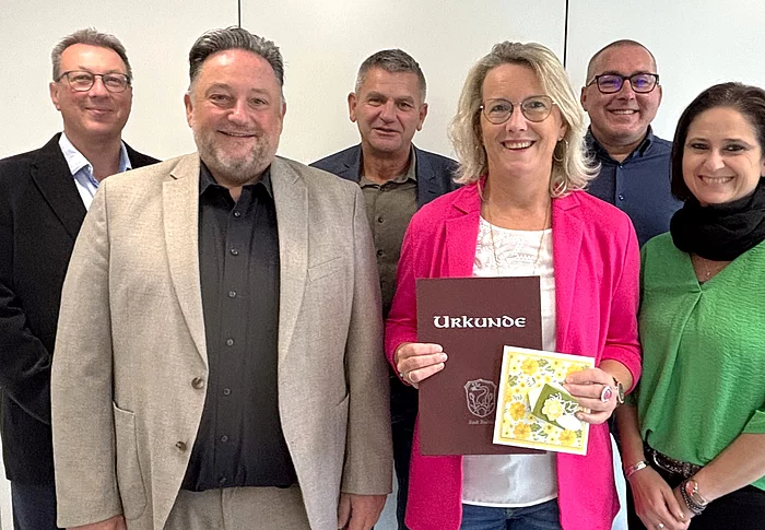 Ihr 40-jähriges Jubiläum im öffentlichen Dienst feierte Irene Steinbauer im September 2025. Seit fast 25 Jahren leitet sie die Stadtkasse und ist dort die zentrale Ansprechpartnerin für sämtliche Zahlungsangelegenheiten der Stadt Teublitz. Ob Mahnungen, Zahlungseingänge in bar oder digital oder die Verwaltung der Konten – mit ihrem Fachwissen lenkt sie den täglichen Zahlungsverkehr.