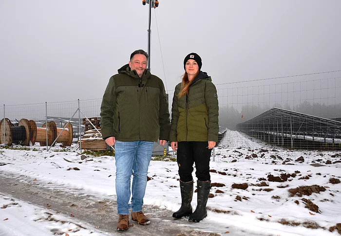 Der Bebauungsplan vom 27. Juni 2022 gibt vor, dass im Teublitzer Ortsteil Richthof eine Freiflächen-Photovoltaikanlage errichtet wird. Bürgermeister Thomas Beer machte sich zusammen der zukünftigen Betreiberin vor Ort ein Bild vom Baufortschritt.
