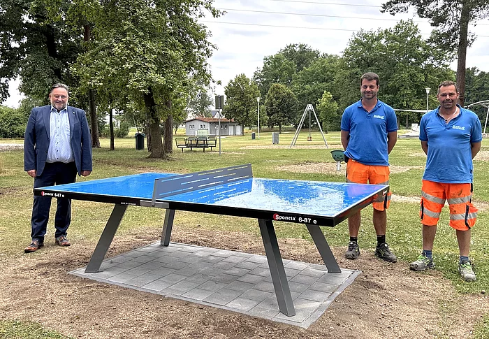 Die Badestelle „Höllohe“ Teublitz hat ein neues Sportangebot: Seit kurzem steht dort – in direkter Nähe zum Basketballkorb und dem Volleyballfeld – eine neue Tischtennisplatte zur Verfügung. Damit ist in diesem Bereich ein kleines, vielseitiges Sportareal entstanden, das zum Spielen, Trainieren und Verweilen einlädt.