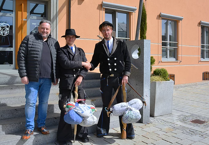 Mitte April 2025 empfing Bürgermeister Thomas Beer zwei Wandergesellen im Teublitzer Rathaus: Ansgar Groß, seit etwa zwei Monaten auf Wanderschaft, und Max Florian Fischer, der bereits seit knapp drei Jahren unterwegs ist, machten Halt in Teublitz. Dabei gaben sie Einblicke in ihre bisherige Reise.