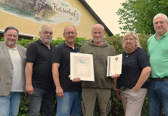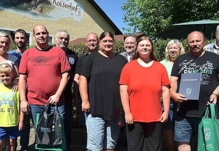 Schon seit 15 Jahren kommt die dreiköpfige Familie Onzulis aus Lauf an der Pegnitz zusammen mit Dirk Möhlenkamp aus Nürnberg jährlich zweimal nach Teublitz. Besonders das Angeln und die Unterbringung im „Koiserhof“ im Ortsteil Kuntsdorf hat es der Reisegruppe angetan. Auch Ausflüge in die nähere Umgebung gehören fest zum Urlaubsprogramm. Anfang August 2024 gab es für die Urlaubstreue Ehrungen und Geschenke der Stadt sowie vom Fischereiverein.