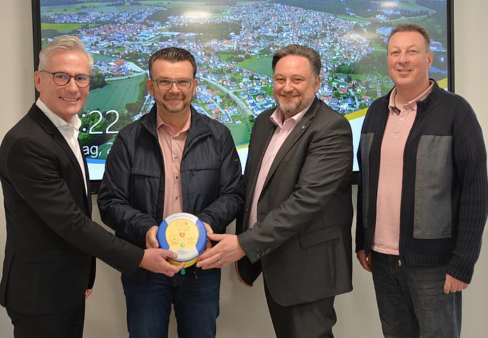 Die Stadt Teublitz freut sich über eine großzügige Spende eines öffentlichen Defibrillators durch die Sparkasse im Landkreis Schwandorf in Zusammenarbeit mit dem gemeinnützigen Verein "Bürger retten Leben" (BrL). Die Spende kam im Rahmen des Aktionsjahres „Herzsichere Kommune“ zustande.