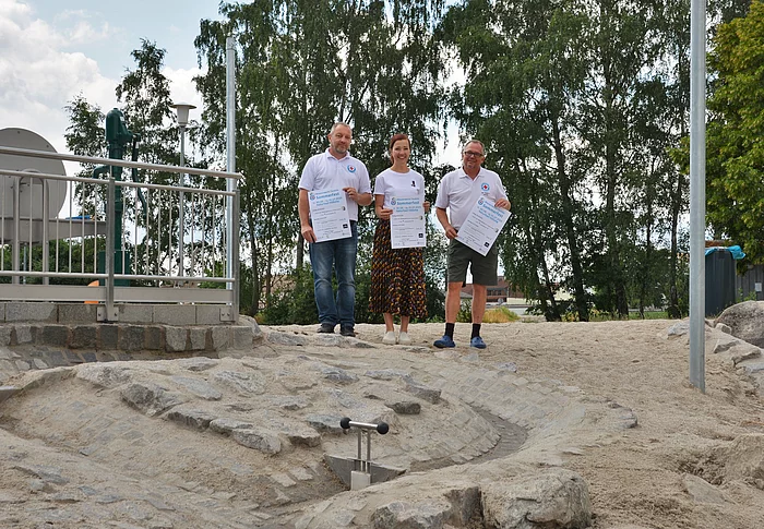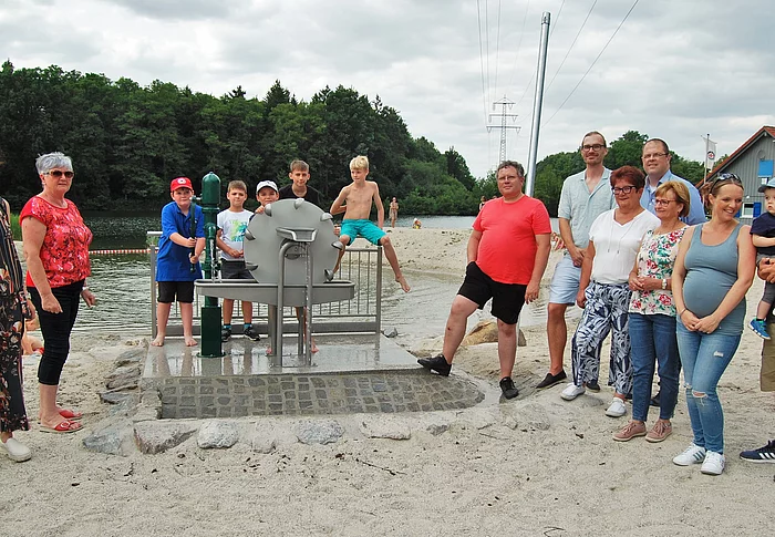 Um eine Attraktion reicher ist die Badestelle „Höllohe“ in Teublitz seit dieser Bade-Saison. Mit einem Kostenaufwand von rund 30.000 Euro aus dem „Bürgerhaushalt“ wurde beim Kinderbecken ein Wasserspielplatz für die kleinsten Badegäste gebaut.