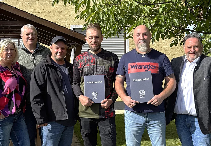 Seit vielen Jahren verbringen zwei begeisterte Anglerfreunde ihre Herbsttage im Teublitzer Naabtal: Kai Powalla aus Pfaffenhofen und Maico Becker aus Sinsheim wurden nun am Koiserhof im Teublitzer Ortsteil Kuntsdorf für 15 Jahre Urlaubstreue geehrt. In geselliger Runde wurde gefeiert, wozu auch Bürgermeister Thomas Beer auf einen Besuch vorbeischaute.