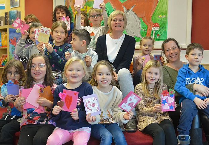 In der Stadtbücherei gab es pünktlich zum Valentinstag für Kinder die Möglichkeit, Geschenke zum „Tag der Liebenden“ zu basteln. Rund 15 Kinder hatten sich für eine lebhafte und kreative Stunde zusammengefunden.