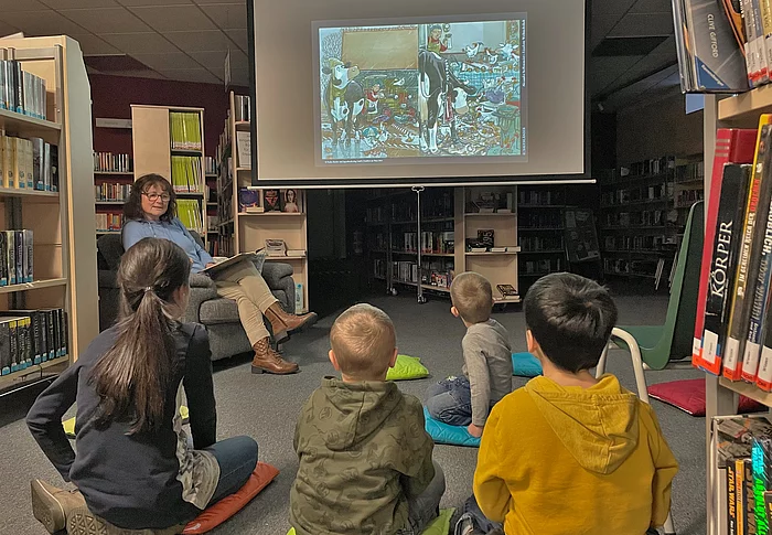 Mit „Lieselotte der Weihnachtskuh“ gab es passend zur Adventszeit ein unterhaltsames Bilderbuchkino für Kinder ab vier Jahren in der Stadtbücherei. Die vom Team der Bücherei vorgetragene und unterhaltsame Geschichte, sorgte für reichlich leuchtende Kinderaugen im Publikum.